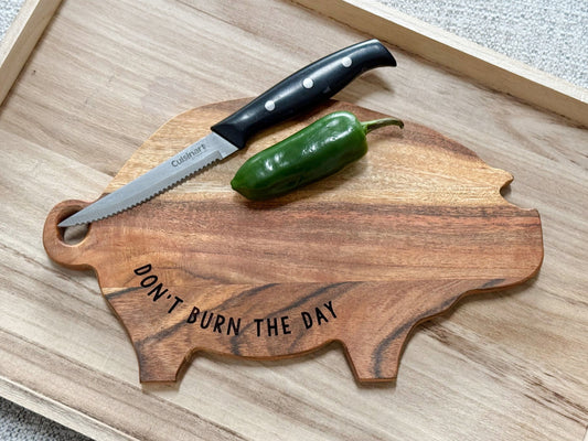 Sold outPig Don't Burn The Day Cutting Board