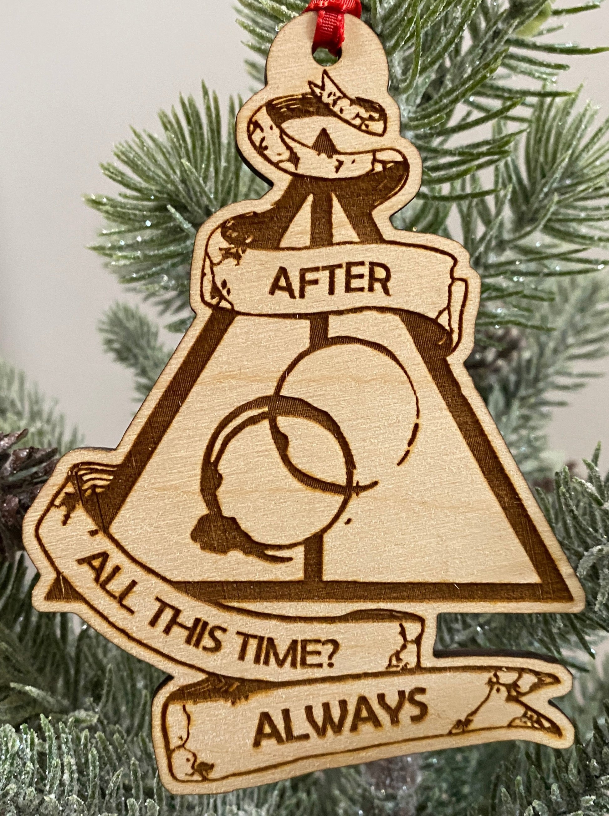 Available only in bass wood the dimensions of this ornament are: 4.25x3.5