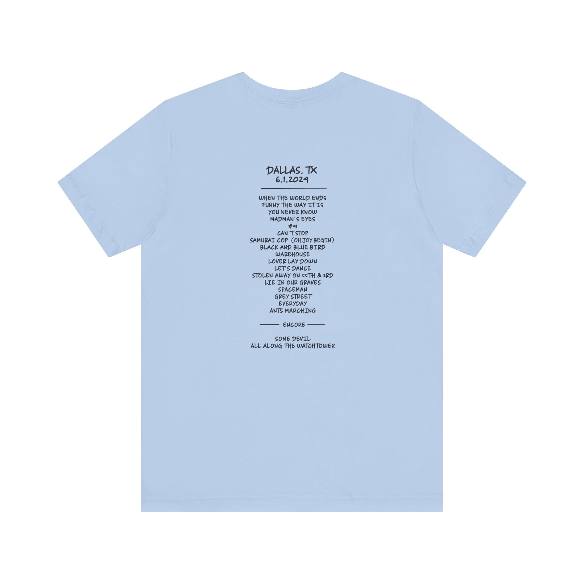 2- Baby Blue Tees with Modified Dallas Tee with Setlist $32.00 each